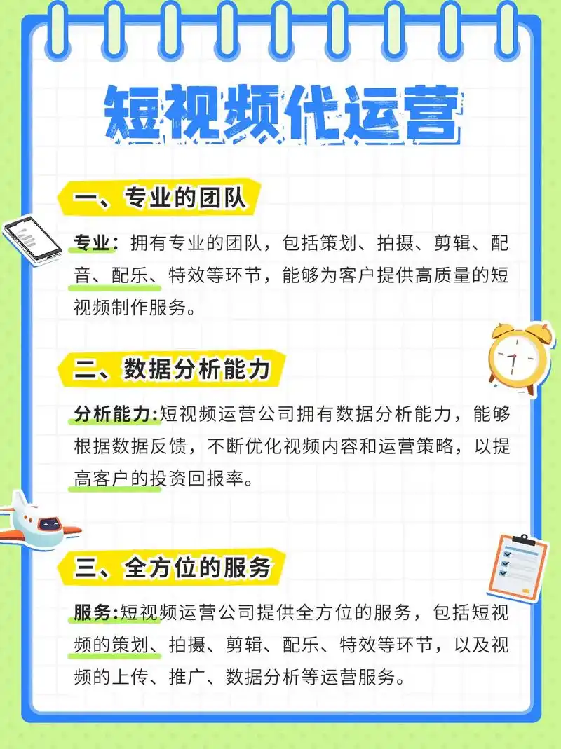 (微信电话:16744000080)专注短视频代运营全链路服务,提供内容策划、文案生成、脚本拍摄、账号定位一站式解决方案。助力企业引流获客,通过抖音快手矩阵霸屏精准触达目标用户。结合搜索引擎优化(SEO快排)与平台热门推荐机制,打造品牌曝光闭环。专业团队深耕推广公司资源,定制爆款内容策略,实现流量与转化双提升。从0到1赋能账号成长,让您的品牌在短视频赛道强势突围!